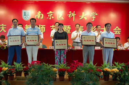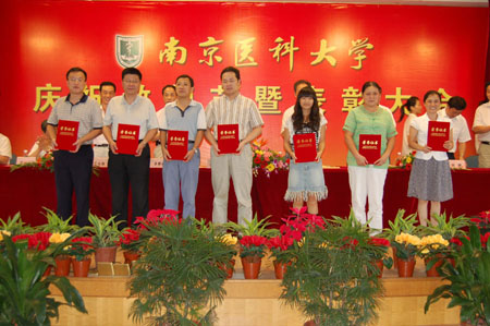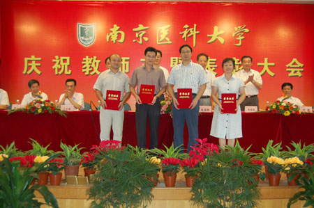 9月9日下午,我校庆祝教师节暨表彰大会在图书馆五楼大会议室召开。校领导陈国钧书记,陈琪校长,伏延新副书记,王心如、徐耀初、张前德、胡刚、王长青副校长出席了表彰大会。全校各受表彰学院、学科代表、副教授以上教师、学系主任、科级以上干部、各附属医院代表、离退休老同志代表及部分学生代表共三百余人参会。