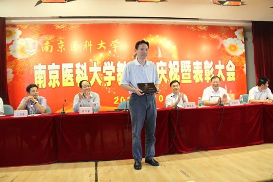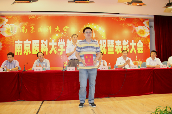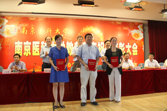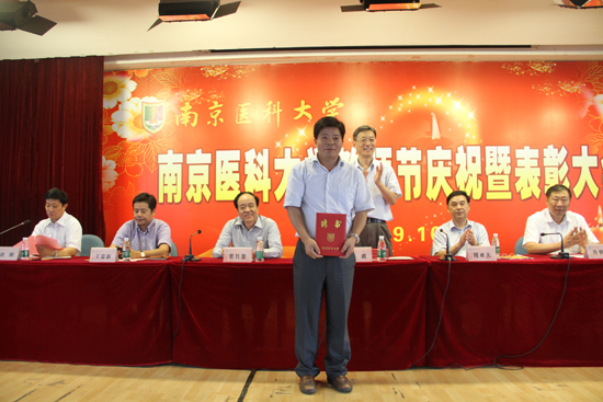 2013年9月10日,学校隆重召开了第29个教师节庆祝暨表彰大会。会上,我院多名教学、科研一线的教师受到了表彰:陈峰教授、周建伟教授荣获南京医科大学首届“教学名师”称号;张正东教授、胡志斌教授入选南京医科大学特聘教授(第一层次);沈洪兵教授获选“2012年度单篇影响因子最高SCI收录论文通讯作者”; 周建伟教授获教育部高等学校科学研究优秀成果奖自然科学二等奖;王心如教授主编教材《毒理学基础》入选国家“十二五”规划教材;2013年度“扬子江奖教金”特等奖获得者李磊教授、南京医科大学“青年教师奖教金”获得者顾爱华、易洪刚。