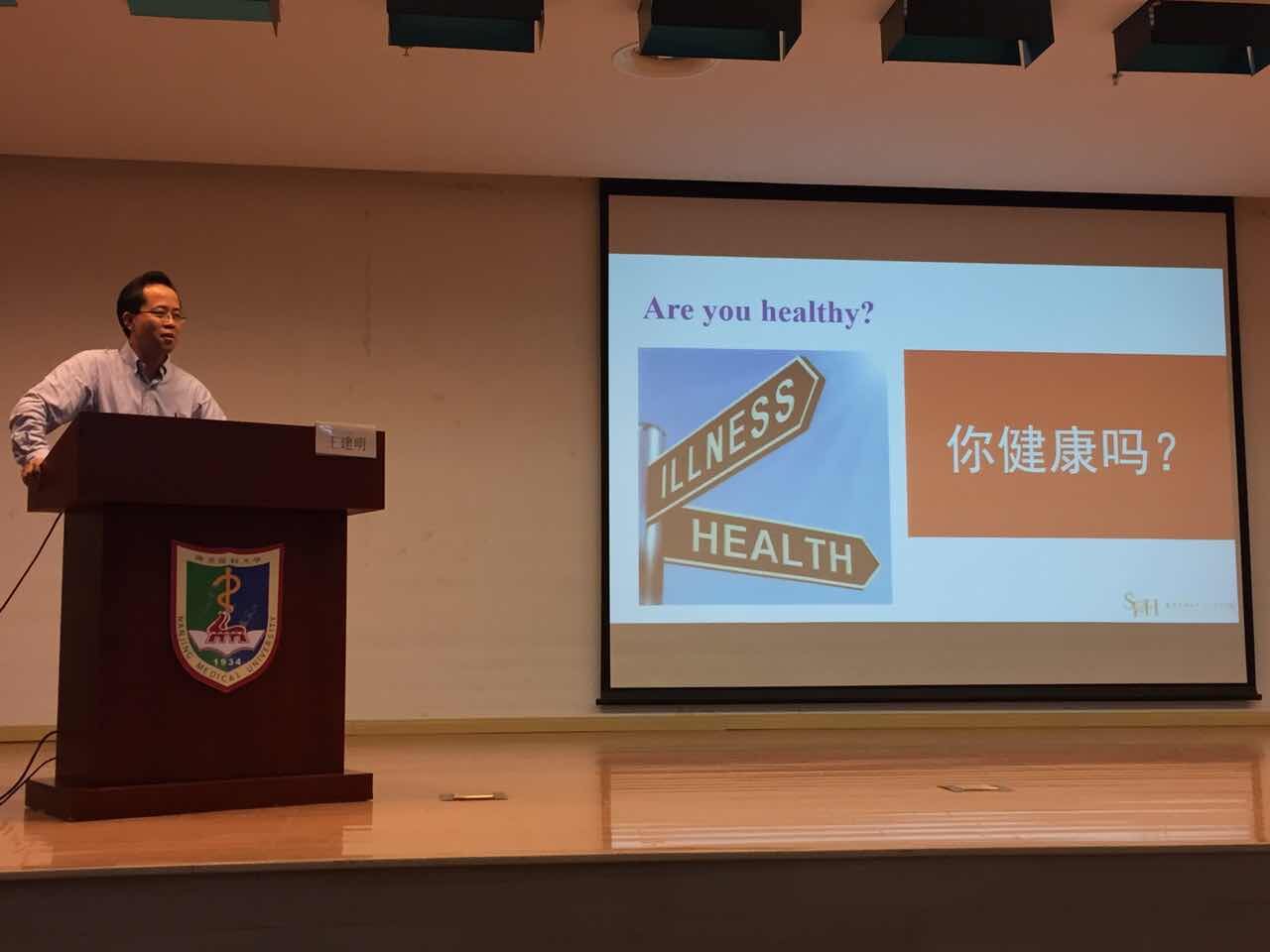 讲座伊始,王教授提出了“什么是健康”这一话题,引发了同学们的思考。谈古论今,他结合了前人的研究将健康总结为“身体,心理和社会适应的良好状态”。王教授联系当下物质生活丰富而健康问题却日益堪忧的现象,引导同学们发现存在于大家身边的健康隐患。