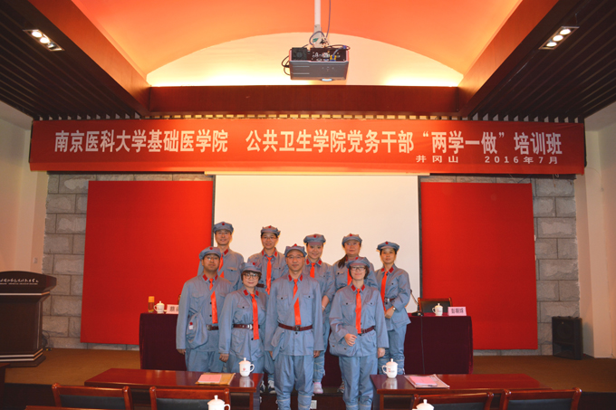 为深入贯彻习近平总书记系列重要讲话精神,积极贯彻落实“两学一做”学习教育,2016年7月18-20日,公共卫生学院党委会同基础医学院党委组织党务干部远赴井冈山开展“不忘初心、继续前行”为主题的“两学一做”专题培训。朱慧娟副书记带队,学院党委会成员、教工党支部书记、学生辅导员参加了此次培训。