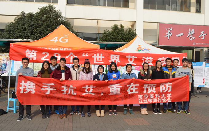 2016年12月1日中午,南京医科大学红丝带同伴协会在树人广场举办了“携手抗艾,重在预防”为主题的签名宣传活动。