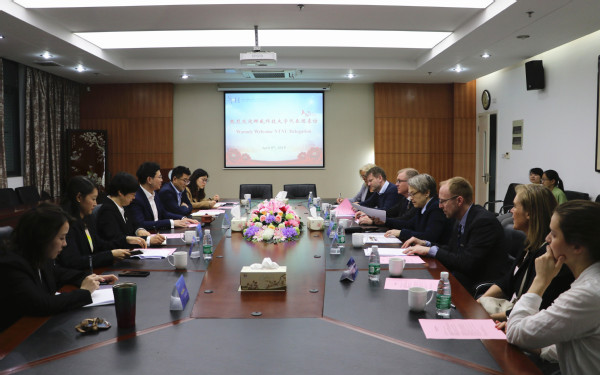 夏彦恺院长首先对挪威科技大学代表团的来访表示热烈欢迎,随后双方就中外合作办学、学生交换、教师互访、科研合作等进行了深入交流,重点洽谈了中外合作办学的细节问题并初步达成共识。
