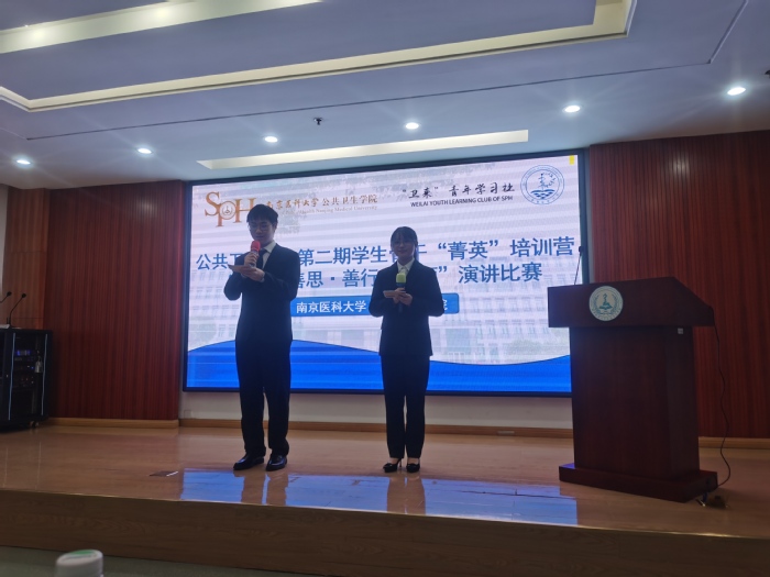 2020年11月20日下午,公共卫生学院学生骨干菁英训练营闭幕式暨“善学·善思·善行·善领”演讲比赛在至诚楼G205报告厅顺利举行。副书记副院长苏益民老师、学工办毛献凯老师、何秋惠老师、班主任代表朱军老师和吉晓明老师应邀出席,院会主席团刘泽然和顾嘉颖与各位老师一同担任此次演讲比赛的评委,整场活动由2020级周禹欣和庄一鼎主持。