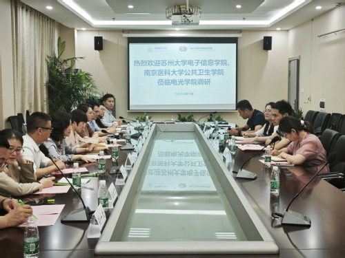 为高标准高质量开展学习贯彻习近平新时代中国特色社会主义思想主题教育,促进省内高校互相交流、共谋发展,6月6月,公共卫生学院赴南京理工大学电子工程与光电技术学院开展学习调研活动。学院党委书记盛彤彤,党委副书记、副院长毛曦,学生工作办公室主任曹茹,办公室工作人员、辅导员一同参加调研。南京理工大学组织部部长朱建飞、电子工程与光电技术学院党委副书记、纪委书记刘明接待了公共卫生学院一行。