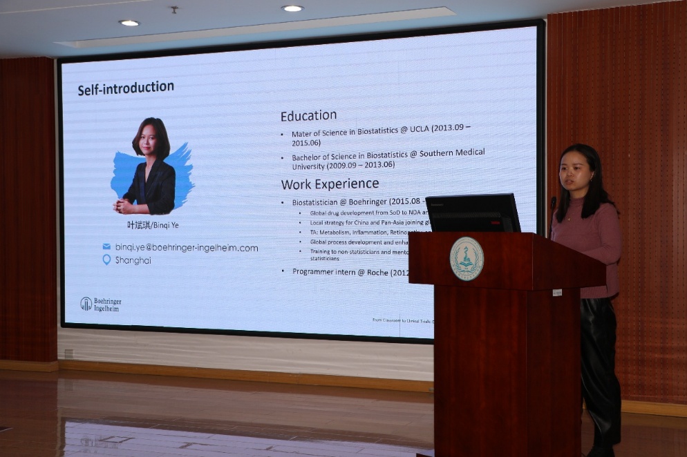 盛彤彤书记介绍了学院的学科特色和发展近况,并对勃林格殷格翰公司长期以来在生物统计人才培养方面所给予的支持表示衷心感谢。张维博士在致辞中表示,BI公司非常荣幸能够资助六十余位生物统计专业的优秀学子,并希望以奖学金为平台,持续促进学界与业界的交流互鉴。