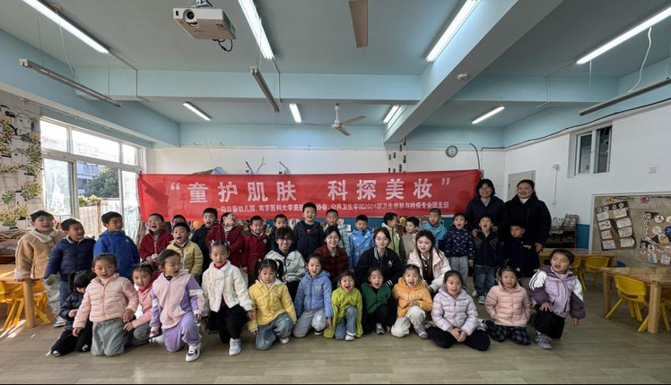 为发挥专业优势践行社会责任,将美肤知识转化为通俗易懂的科普内容,11月19日下午,南京医科大学公共卫生学院美肤检验协会联合24级卫生检验与检疫专业团支部,走进南京市江宁区向日葵幼儿园,开展“童护肌肤 科探美妆”主题科普活动。公共卫生学院张晓玲老师担任指导老师,美肤检验协会社长、24级卫检班团支书朱智颖带领团队完成本次科普实践。