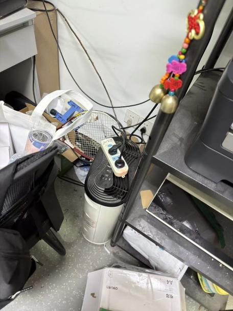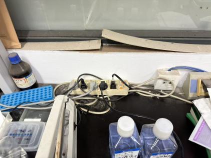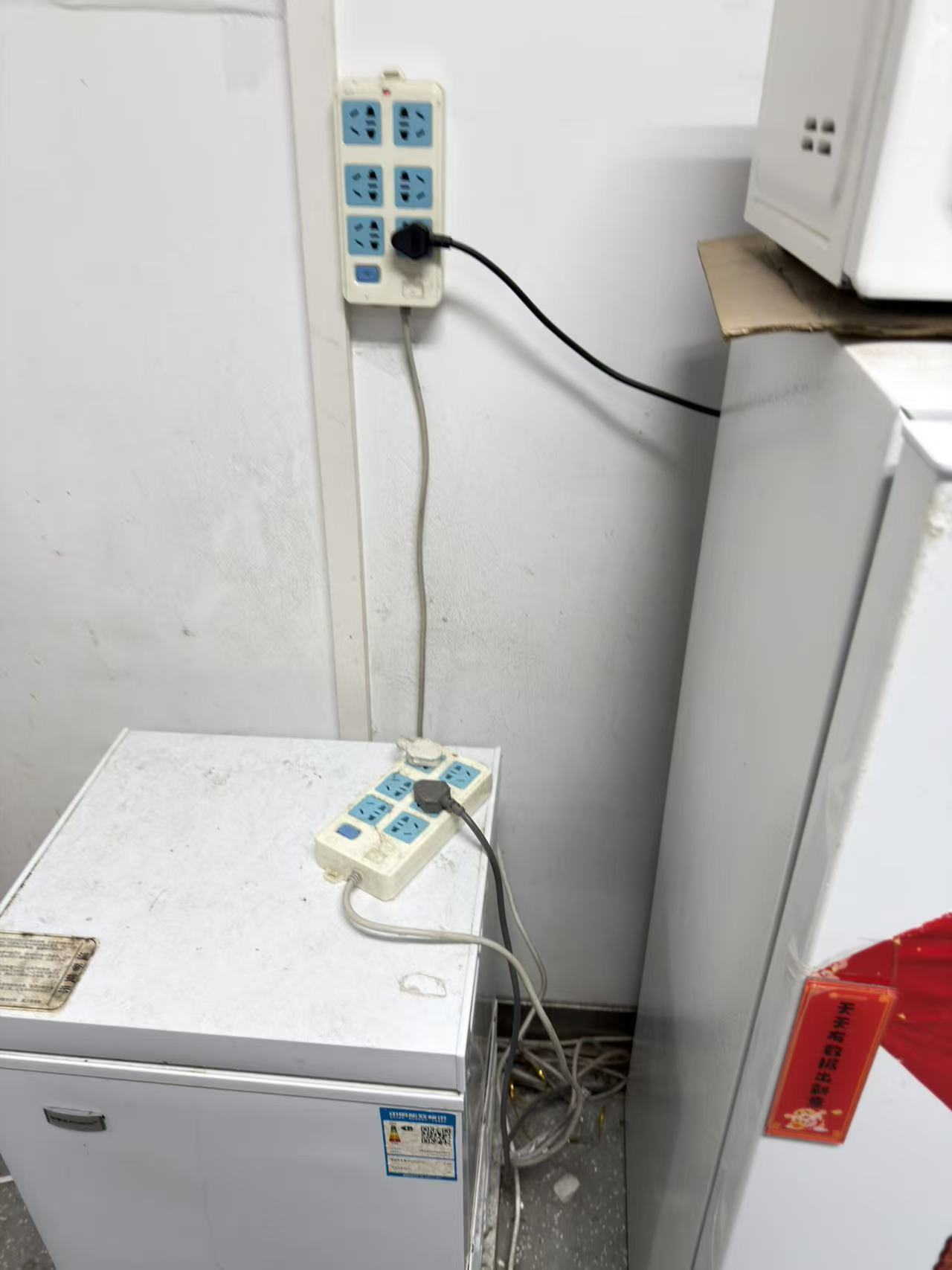 个别实验室插线板飞线、老旧串联或直接置于地面。