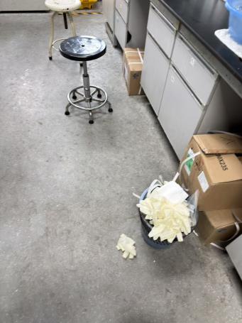 部分实验室、学生自习室卫生较差,未定期打扫。