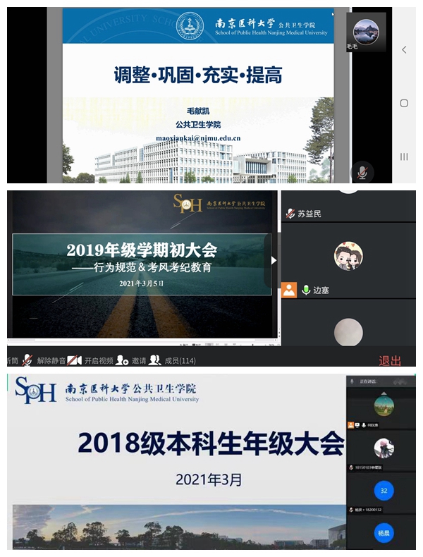 新学期伊始,根据学校疫情防控要求,在学工处的统筹安排下,我院学生已分批次顺利返校报到。为引导学生尽快调整心态,收心回归学习生活,各年级于3月5日下午组织了线上年级大会,学院副书记、副院长苏益民、辅导员和各年级在宁学生参加会议。