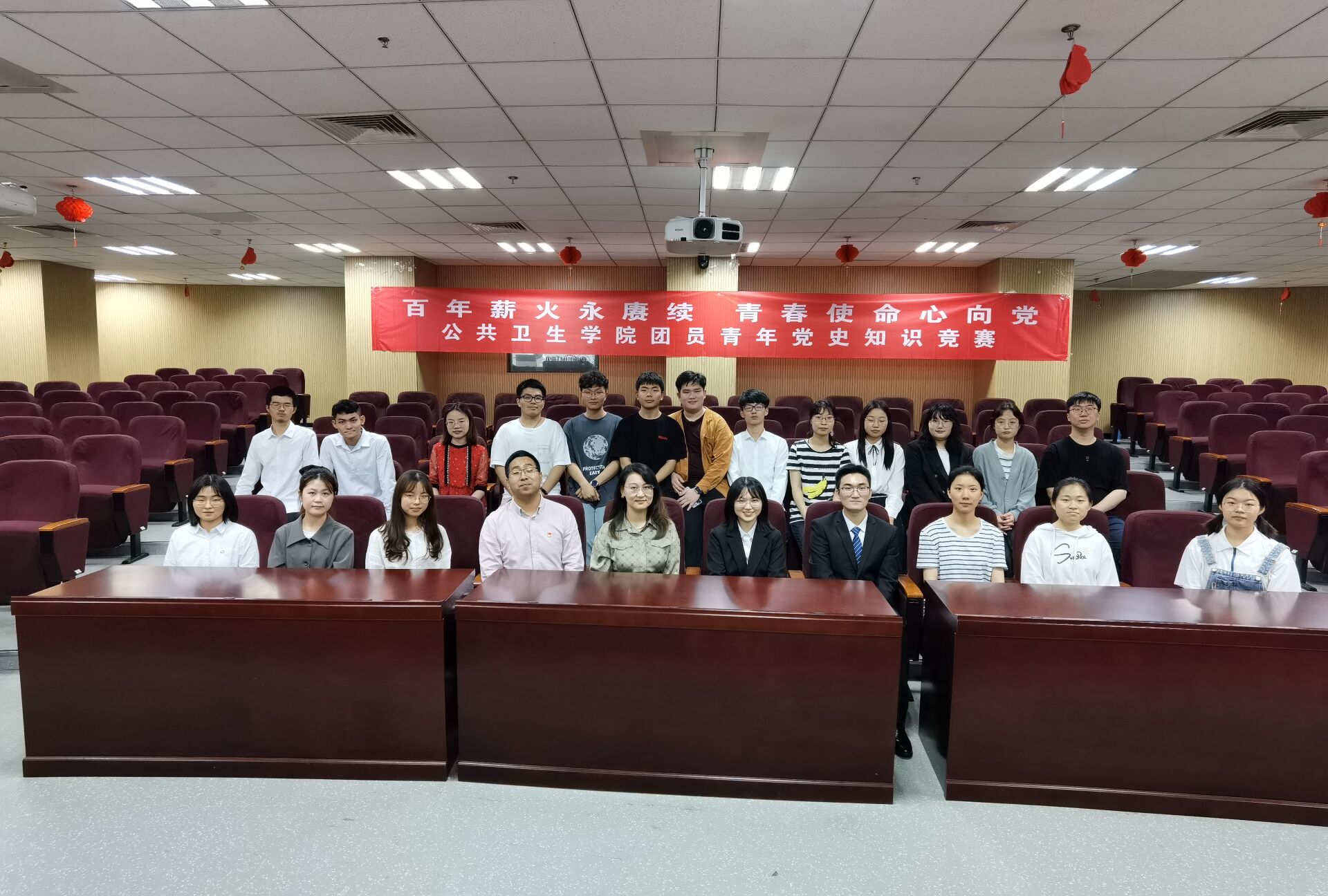 2021年是中国共产党成立100周年。为了进一步加强学院青年学生党史学习教育,引导学生学史明理、学史增信、学史崇德、学史力行,公共卫生学院于5月14日下午六点,在学海楼D001报告厅举办了“百年薪火永赓续 青春使命心向党”团员青年党史知识竞赛。公共卫生学院分团委书记毛献凯老师、副书记边塞老师以及各兄弟学院团学骨干代表出席活动。