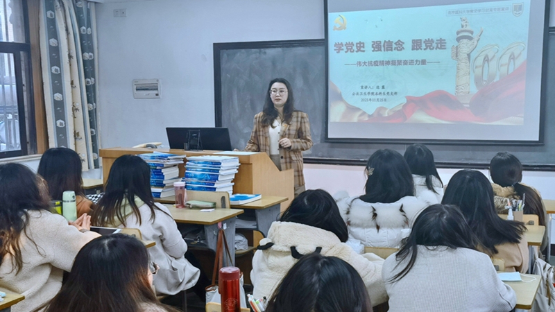 辅导员边塞进行了题为《伟大抗疫精神凝聚奋进力量》的党史教育宣讲。结合新冠肺炎疫情防控取得的重大战略成果,用一个个鲜活的抗疫事迹,生动阐释了伟大抗疫精神的基本内涵和现实价值,引导青年医学生自觉成为伟大抗疫精神的学习者、传播者、践行者,坚定理想信念,赓续中国共产党的精神谱系,充分发挥精神伟力作用,用满腔热血奋力书写青春答卷,为中华民族伟大复兴贡献青春力量!