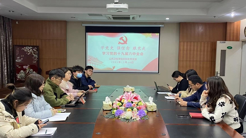 11 月 18日以来,公共卫生学院本科生党支部联合各团支部组织师生党员、入党积极分子、团学骨干和广大团员青年认真学习宣传贯彻党的十九届六中全会精神。