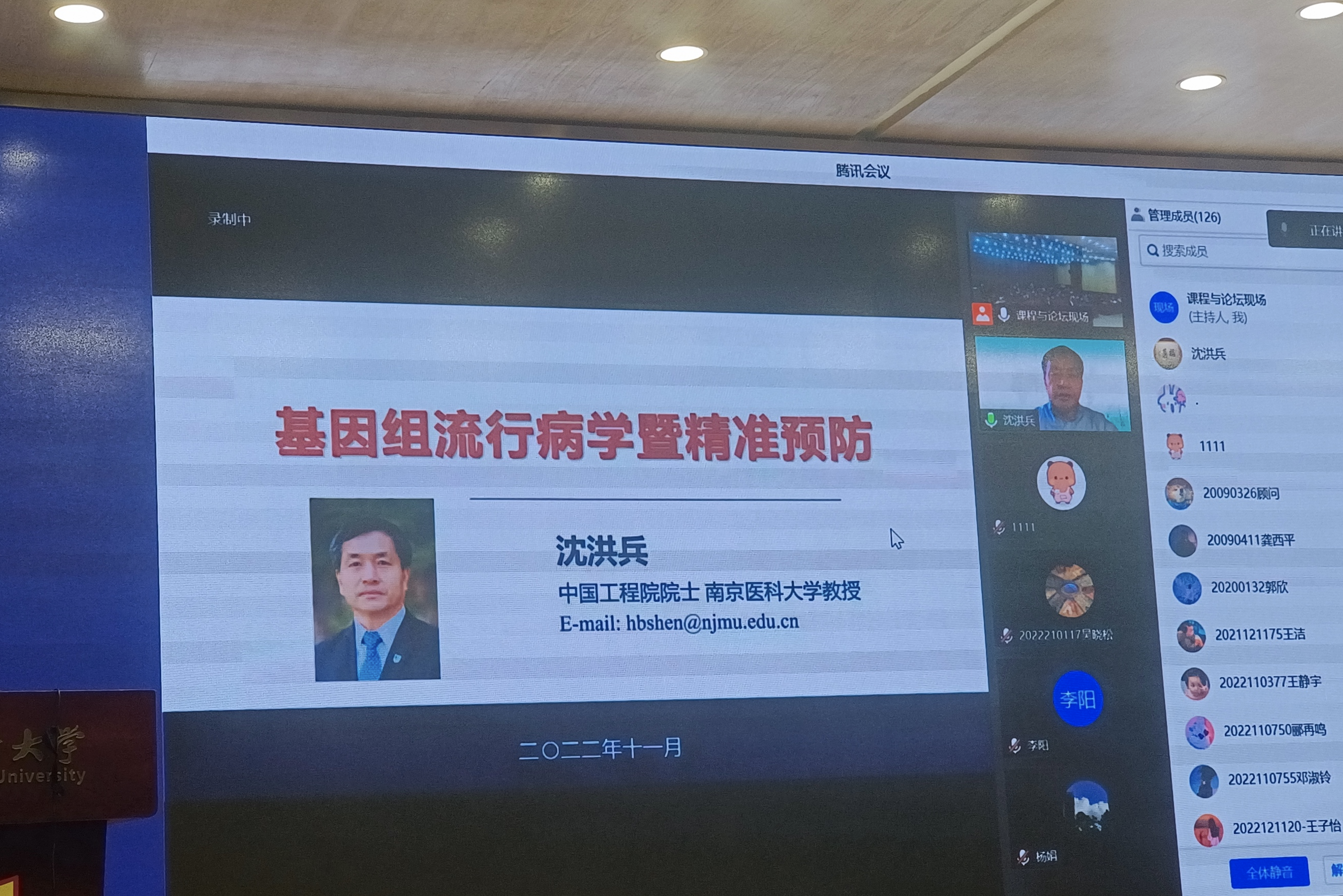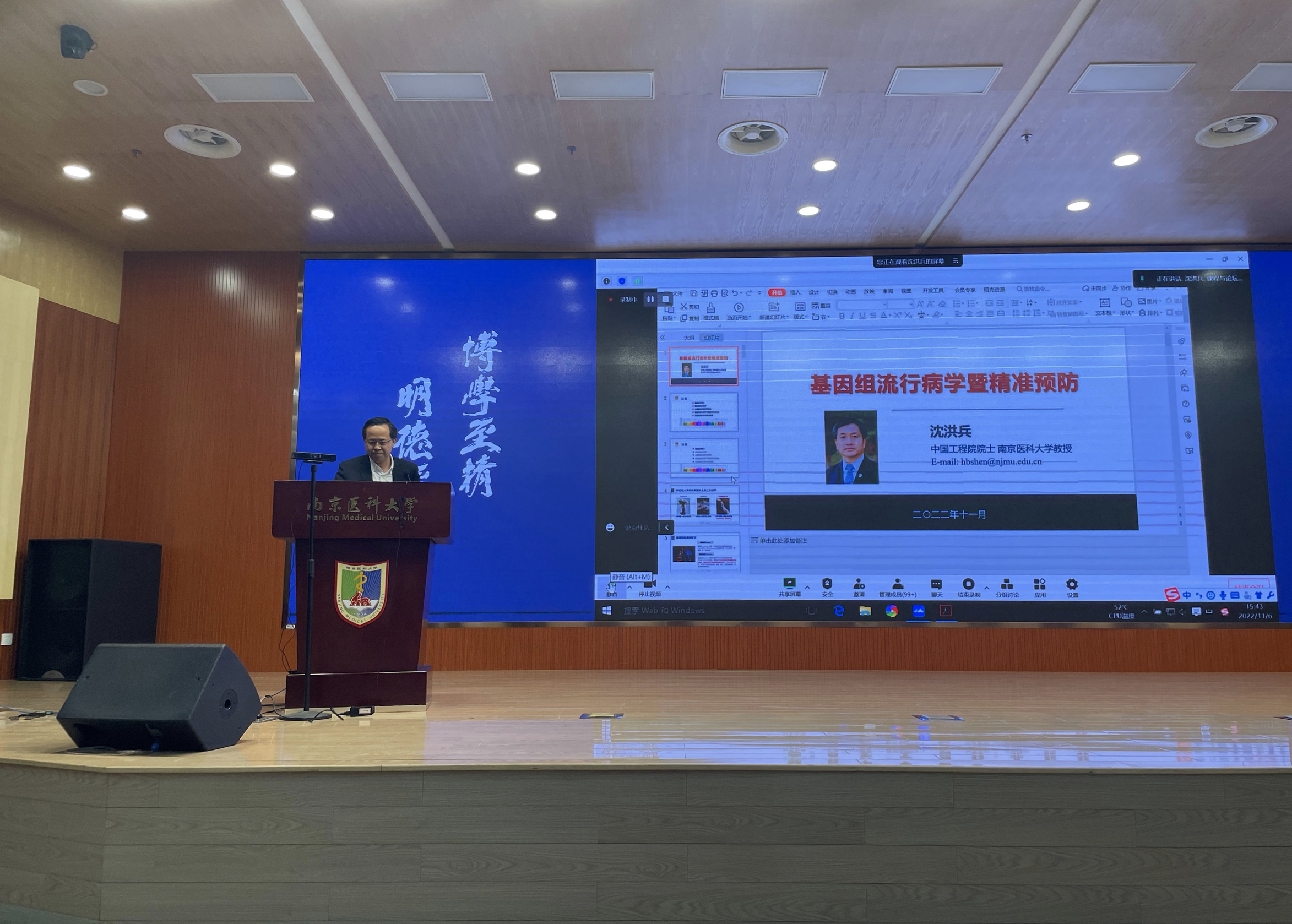 沈洪兵院士系统讲解了基因组流行病学的发展历史、研究方法及研究进展,详细介绍了多基因风险评分通过综合易感位点信息预测疾病在癌症早筛方面的应用前景,结合中国人群肺癌和胃癌大样本基因组数据的分析案例,重点阐述了基因组流行病学在三级预防中的创新性应用。沈院士的报告从宏观、微观两个角度,深入浅出的展示了基因组流行病学在精准预防领域的重大科研成果、重要理论价值和广阔的应用前景,为广大师生和研究人员聚焦重大科研需求、深入探索疾病微观规律、开展精准预防研究实践提供了新思路。