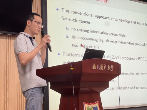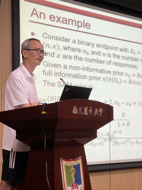 7月6日下午,公卫学院生物统计学系邀请了国际知名专家袁鹰教授和牟荣吉博士分别为大家作了题为“SAM: Self-Adapting Mixture Prior to Dynamically Borrow Information from Historical Data in Clinical Trials”和“A Bayesian Latent-subgroup Phase I/II Platform Design to Co-optimize Doses in Multiple Indications”的学术报告。会议由公共卫生学院生物统计学系主任赵杨教授主持。