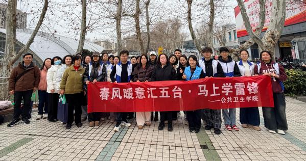 3月5日上午,公共卫生学院劳环卫专业研究生党支部联合卫来青年学习社、食尚营养协会社团,走进五台山国际社区,开展“春风暖意汇五台马上学雷锋”主题志愿服务活动。